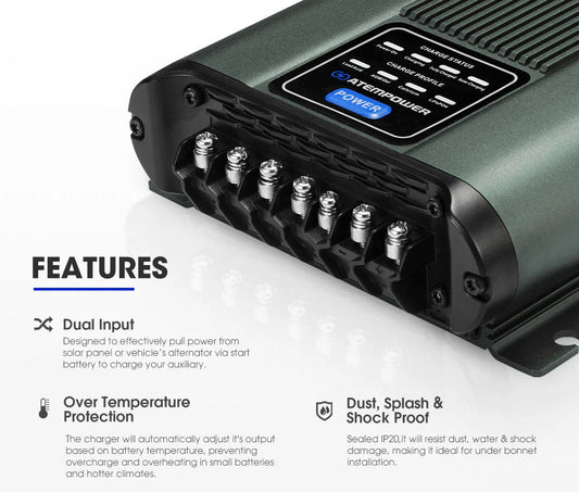 Atem Power 12V 20A DC To DC Battery Charger MPPT System Kit Isolator Dual Battery