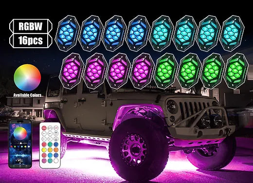 • 12-Pod RF Remote & Bluetooth App Control RGB Rock Light