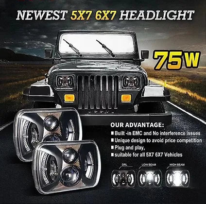 • 5X7inch 75W LED Headlight Halo Amber DRL- Pair