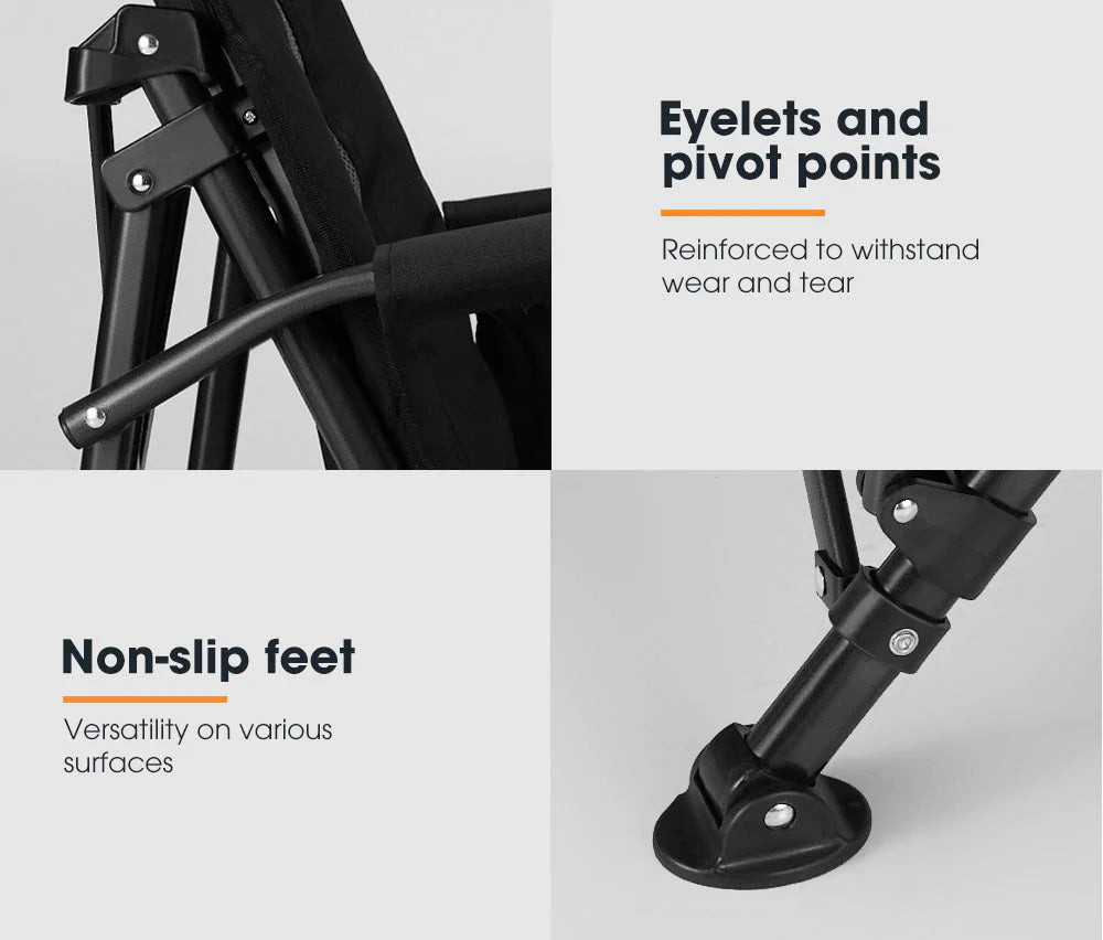 - Strengthened for Durability: All eyelets and pivot points are reinforced to withstand wear and tear, addressing common weak points found in camp chairs.