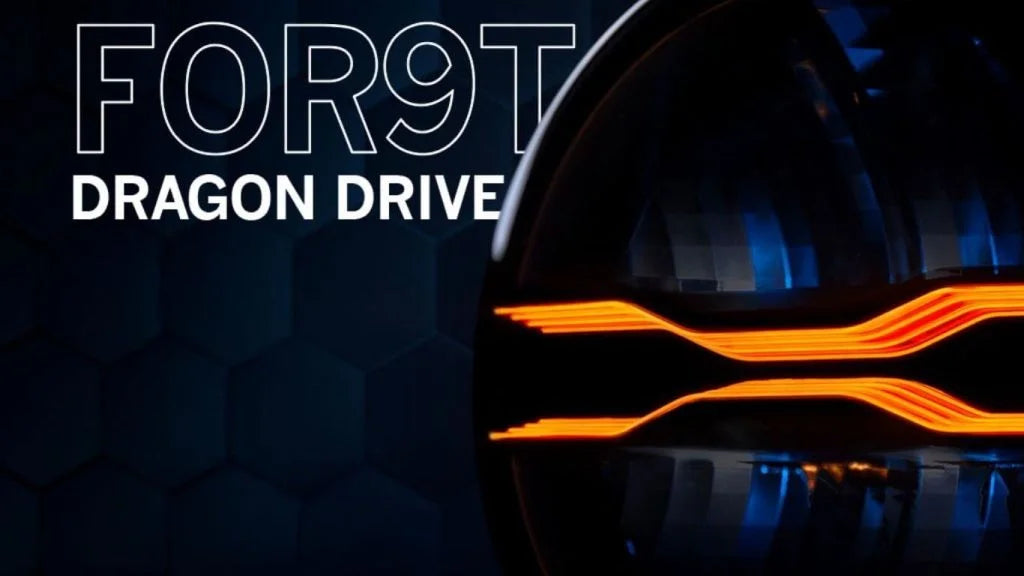 FOR9T IS PASSION. Let the superior performance of FOR9T Dragon Drive show the way. With a white and amber position light, you can choose your glow and show your passion. The artistry of the black design further enhances the shape and brightness of the unique position light. An extensive reflector with the FOR9T honeycomb pattern ensures high visibility and an undeniable look. Dragon Drive has a design where all details matter: its lightweight aluminum housing, high-quality materials, and clean design make it a powerful addition to any vehicle. The extended beam has a long range and high visibility to guide you in the dark. Thanks to the powerful output, nothing can stop you from exploring the night.